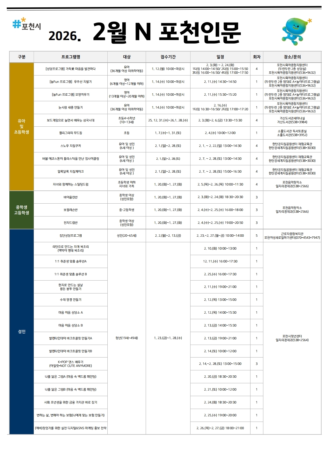 2026년 [2월N 포천인문] 시민대상 프로그램 안내 드립니다.