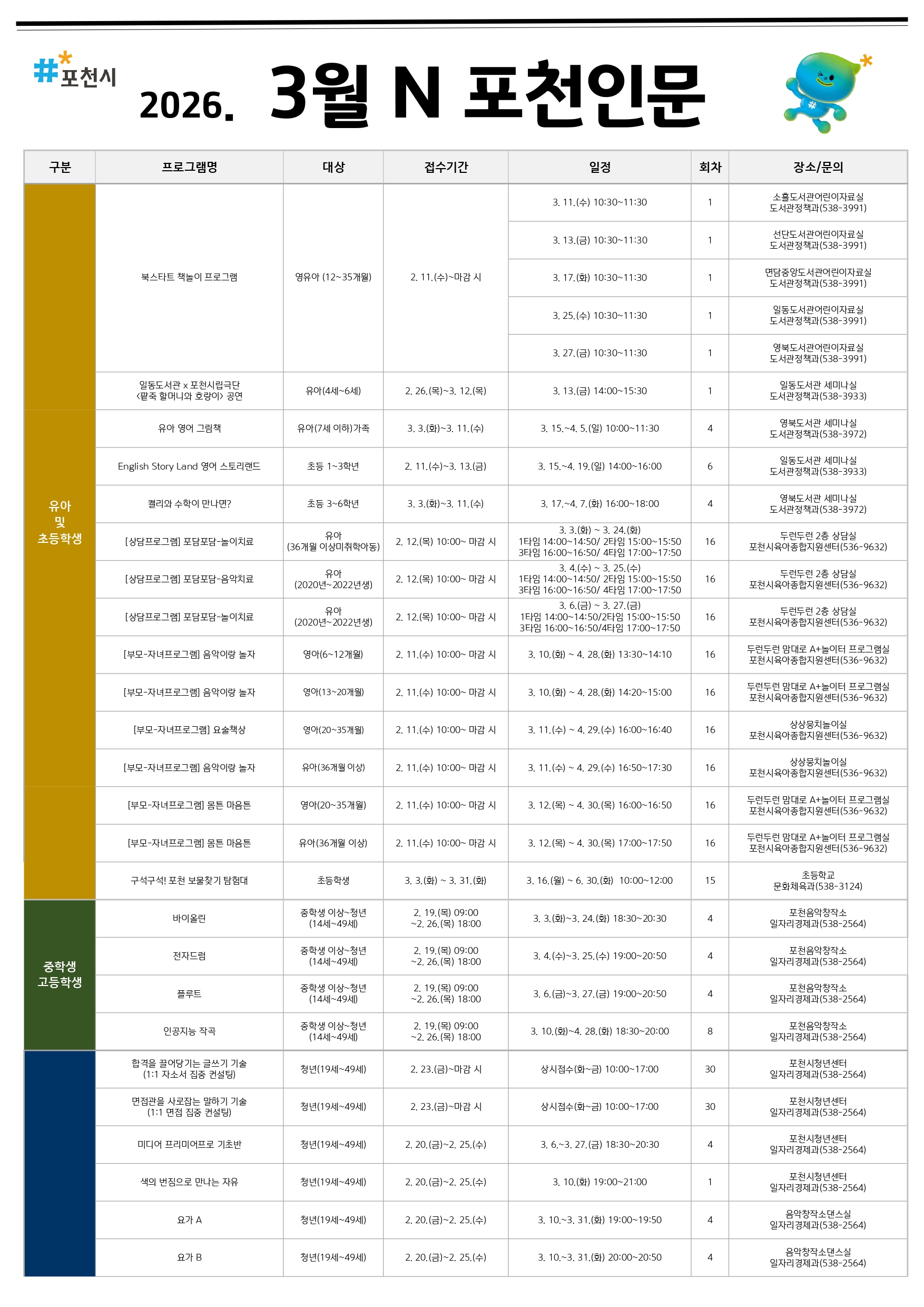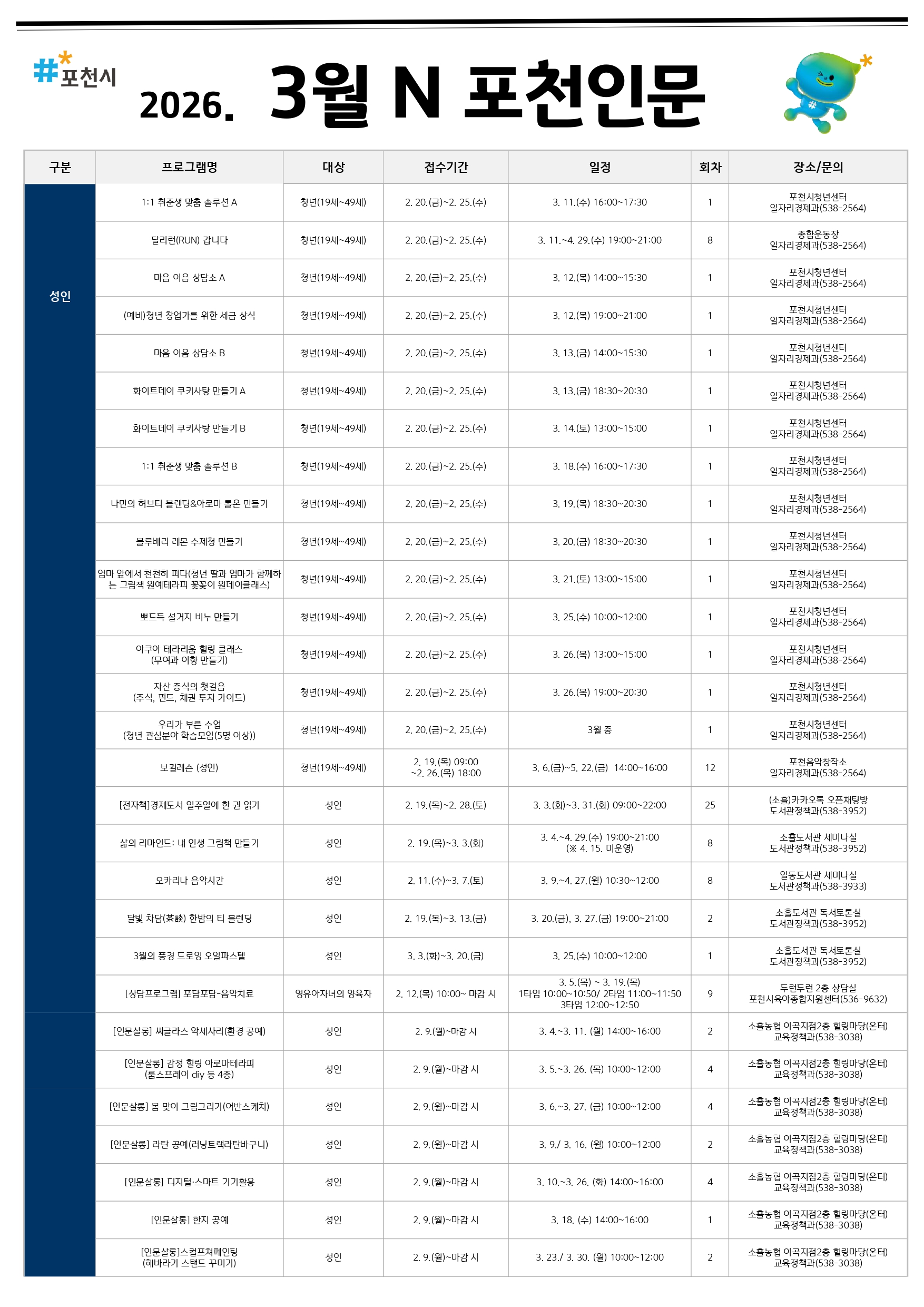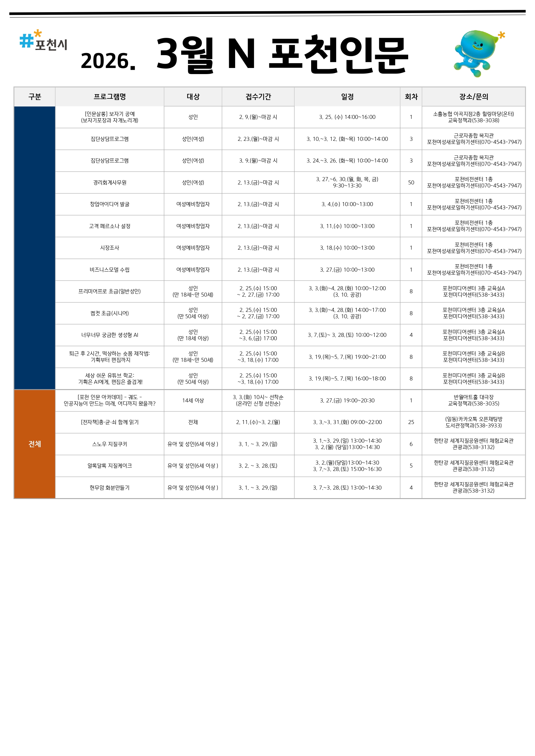 2026년 [3월N 포천인문] 시민대상 프로그램 안내 드립니다.