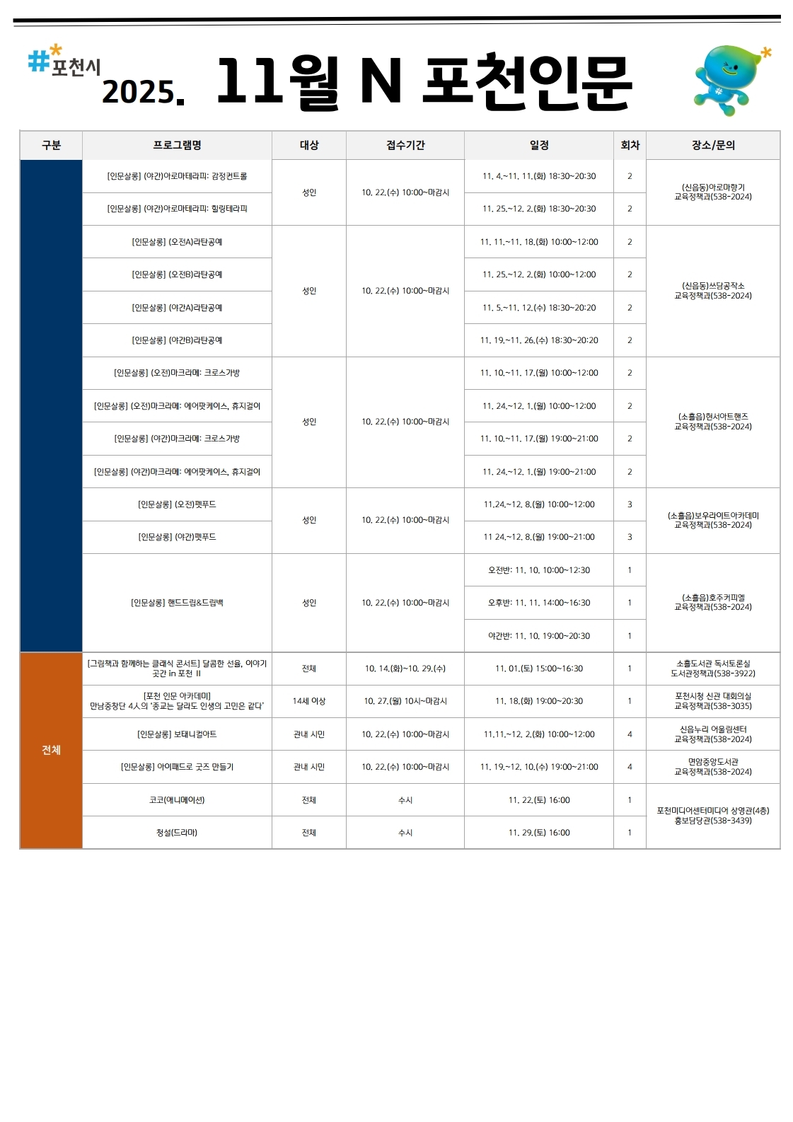 [11월N 포천인문] 프로그램 안내
